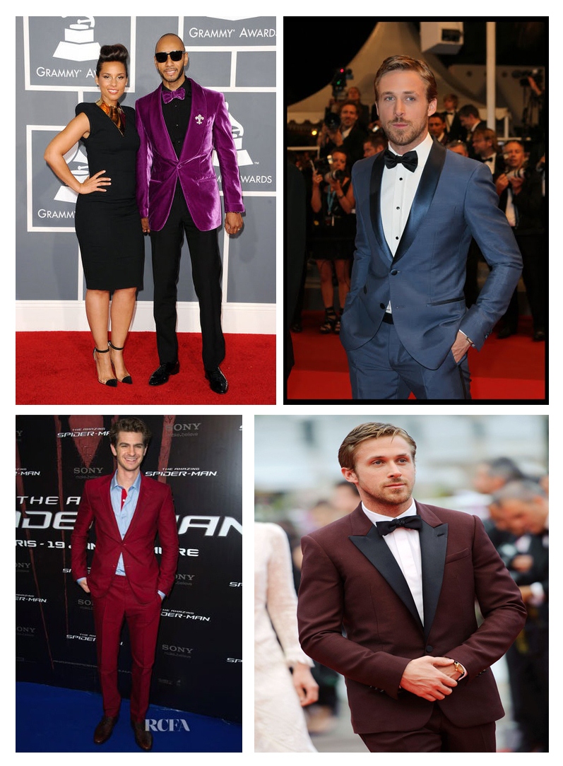 Nos últimos anos vemos essa tendência a usar sempre smoking ou terno preto tem mudado um pouco. Vemos celebridades como Ryan Gosling, Swizz Beatz e Andrew Garfield apostando em smokings e ternos com cores mais vibrantes, não mais o tradicional preto. As cores mais presentes nos últimos eventos têm sido o roxo, vinho e o azul. Será que essa moda pega?