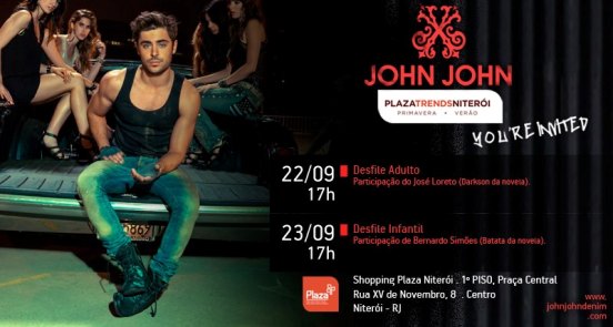 O Plaza Shopping Niterói, do grupo BR Malls, terá no próximo dia 22 e 23 o Plaza Trends, evento de moda que apresenta as coleções da próxima estação das marcas do shopping. Serão no total 74 marcas a se apresentarem, entre elas a John John, que terá participação do ator José Loreto, com o desfile da coleção de Verão 2013, no dia 22, sábado 17h (desfile adulto), e 23, domingo 17h (desfile infantil).
