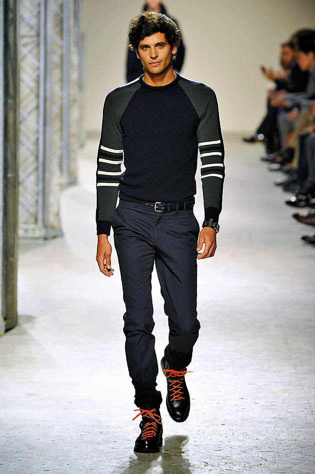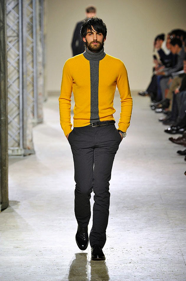 No desfile que fez na Semana de Moda Masculina de Paris, a Hermès trouxe uma coleção bem variada, um mix de alfaiataria e sportwear com uma cartela de cores bem variada. Amarelo, rosa, vinho, preto, gelo e no detalhe, coturnos com cadarços laranja bem estilosos. Confiram a coleção de outono/inverno 2013/14.