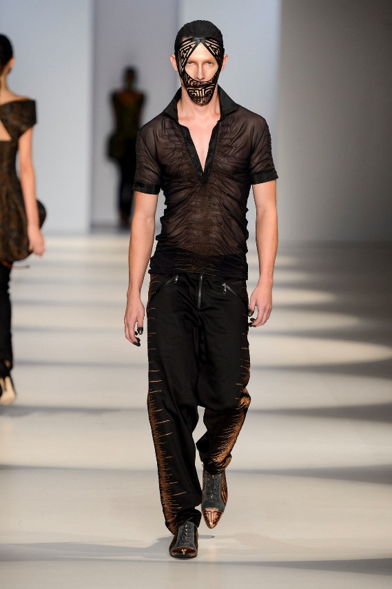 Lino Villaventura nos encanta com o seu estilo único e super conceitual nesta temporada de moda do São Paulo Fashion Week. Gostando ou não do seu estilo – se você for um fashionista – uma coisa você terá de admitir: seu estilo é one of a kind e reconhecível a distância. Saber a inspiração que o estilista buscou para sua coleção é uma incógnita, pois como ele mesmo descreve, sua coleção “viaja na imaginação”. Lino nos trouxe muito bordado – a mão -, transparência, plissado e metalizado minimalista em canutilhos e também em pequenos quadradinhos para sua coleção de primavera/verão. A cartela de cores desta coleção era bem metalizada, com dourado, prateado, bronze e também preto, branco, verde musgo, amarelo e vermelho. Enfim, não vele a pena descrever uma coleção que na verdade é indescritível, sendo apenas passível de apreciação, assim como uma obra de arte – o que realmente é. Enjoy.