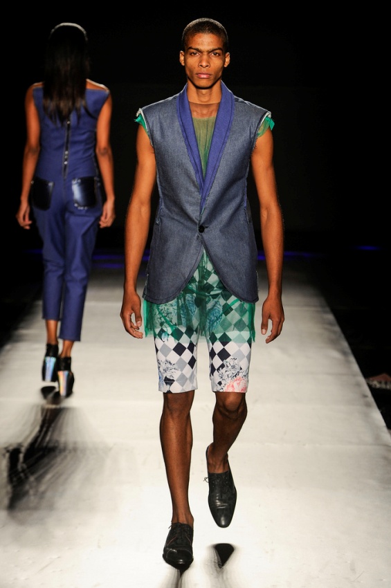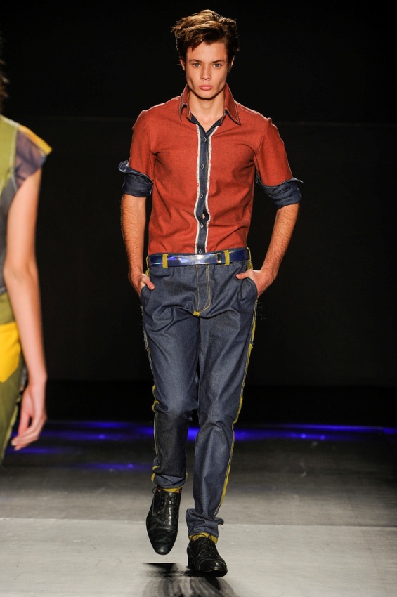 Jeans é o material base da coleção de primavera/verão 2013-14 do estilista Jadson Raniere no desfile da Casa de Criadores. Quadriculados, listras florais também estavam presentes na coleção cheia de facetas, confira.
