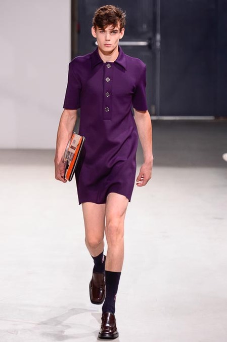 Lá vem polêmica na passarela do Paris Fashion Week: Men. A Raf Simons desfilou uma coleção com peças bem femininas, eram vestido e saias usadas pelos modelos, complementando silhueta bem ajustada. As cores eram vastas, como o rosa, amarelo, verde e branco, mas sempre com a base predominante em preto. Se a saia para homens já causa muita polêmica no meio fashion, imagine vestidos; Marc Jacobs é um adepto ao movimento, e vocês fashionistas, o que acham dessa tendências? Comentem.