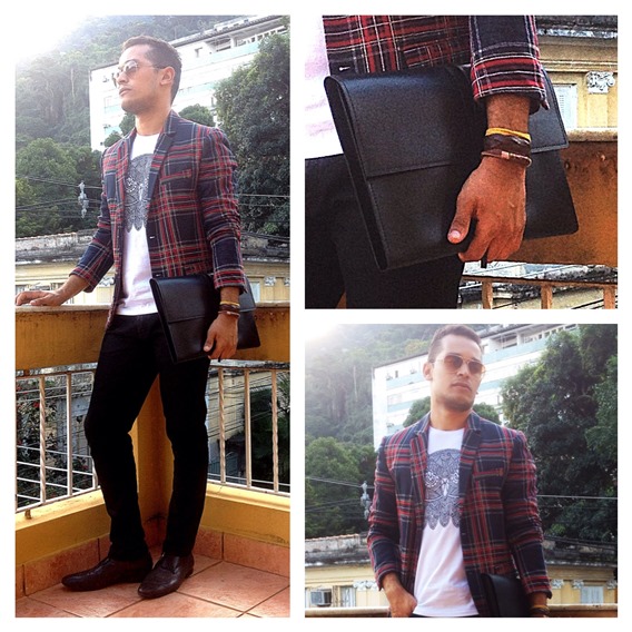 Essa semana fiz um look week com uma composição que adoro: blazer + t-shirt. Acho muito legal essa ideia de quebrar a seriedade do blazer com uma composição casual. Comprei esse blazer na Zara a um dia desses e estou apaixonado por ele, é o blazer que eu vinha procurando e finalmente encontrei. E para compor, usei uma t-shirt com um animal print e minha pasta Herchcovitch, para dar um up no look.