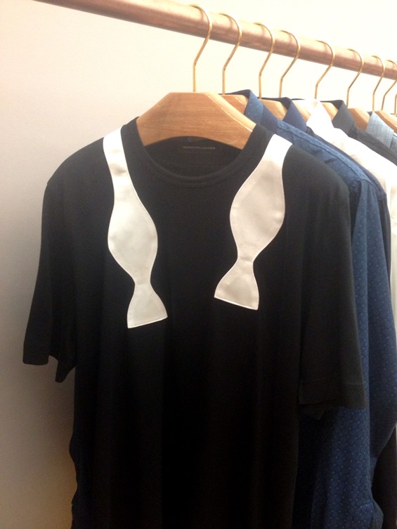 Adorei a proposta dessa t-shir com cara de “fim de festa”, daquele tipo que quando você está em um casamento e no final já acabado de tanto dançar, desamarrou sua gravata borboleta e a deixou jogada no colarinho.