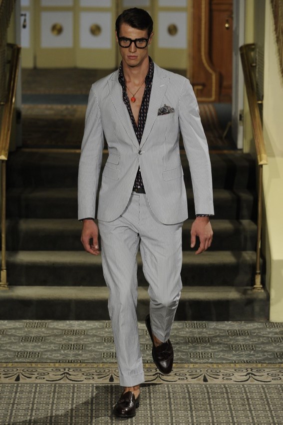 Pense num homem com estilo clássico com pegada moderna, esse é homem Michael Bastian desfilado na coleção de primavera/verão 2014 na última semana de moda em Nova Iorque. Com inspirações em filmes clássicos do cinema francês como “The Red Ballom” e “The Dreamers”, a coleção vem recheada de referências ao clássico com estampas que vêm bombando nas últimas temporadas de moda, como o leopard print usado nas estampas em tons vermelho e verde, além do abacaxi tropical – lembrando aqueles usados pela R. Groove no último desfile desse ano no Fashion Rio. Nessa coleção acredito que Bastian tenha conseguido atingir um novo nível na sua moda com uma espécie de “dândi moderno”, está deslumbrante, confiram.