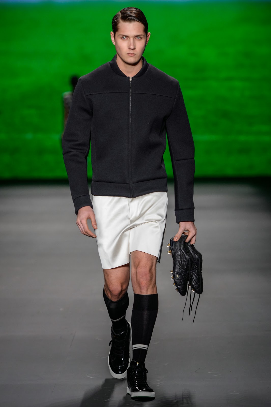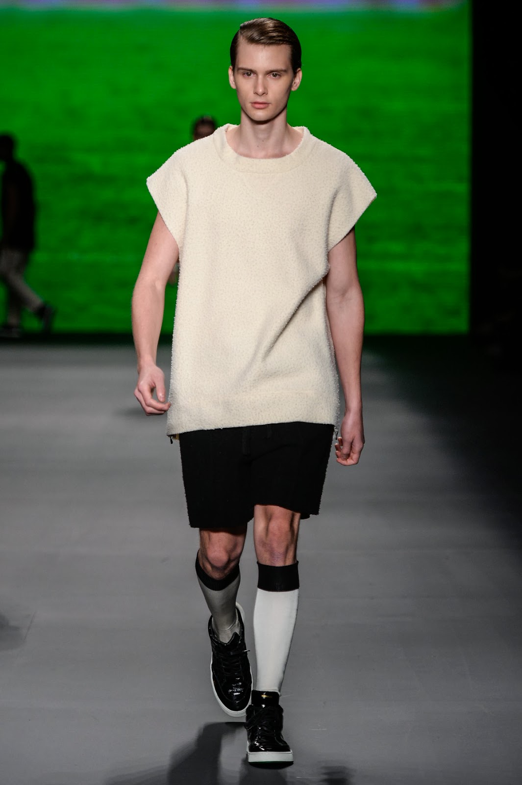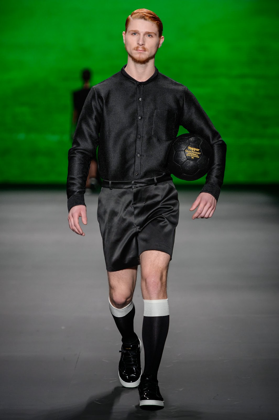 Dada a largada na semana de moda brasileira, e a Osklen é que deu o apito inicial nos desfiles masculinos, literalmente, pois a coleção foi toda inspirada no futebol. Em época em que o Brasil se prepara para receber a copa do mundo em 2014, Oskar Metsavaht trouxe um verdadeiro estádio de futebol para o São Paulo Fashion Week, com peças totalmente trabalhadas no esporte – a maior da parte feminina -, com tecidos imitando os gramados, estampas de torcida e listras que lembravam a rede do gol. A coleção em geral ficou muito boa, sem muita novidade na modelagem, com o padrão já identificável da Osklen; mas acredito que assim como nas estampas das peças femininas, Oskar poderia ter brincado mais com as peças masculinas na inspiração, que apesar de boas, ficaram um pouco duras e frias.
