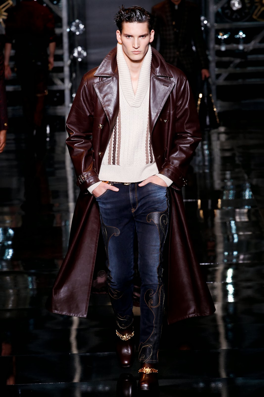 Um cowboy na passarela, é possível? Para Donatella, sim. A Versace foi buscar inspiração no “wild, wild West” americano para a coleção de inverno 2014 desfilada na semana de moda masculina de Milão. Com estampas, bordados e acessórios, a marca trouxe referências ao mundo dos cowboys para as peças, dando um ar fashionista ao rude vaqueiro. Além dessa inspiração anterior, a grife italiana também trouxe peças com referências a grupos underground de motociclistas, com muito couro e spikes.