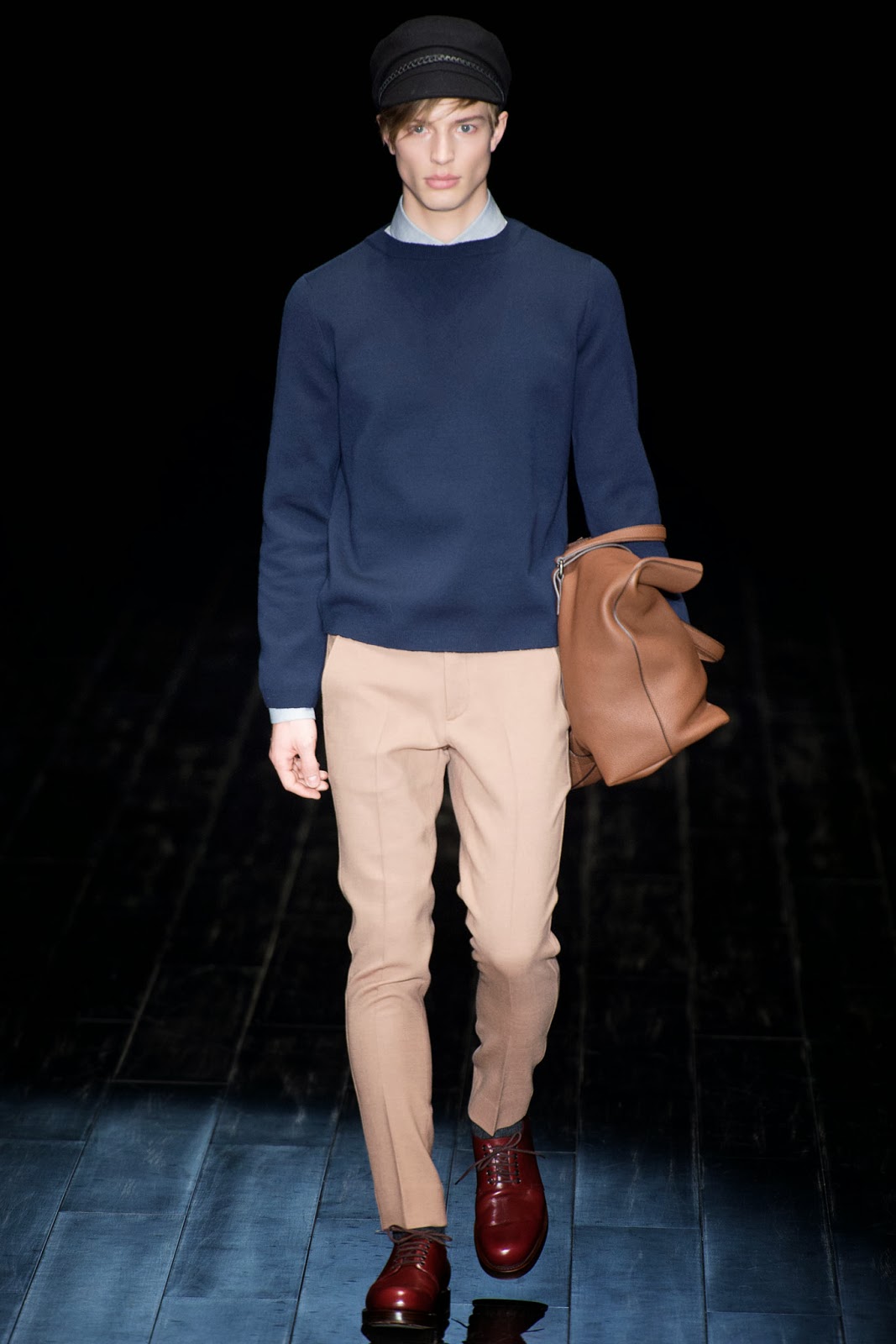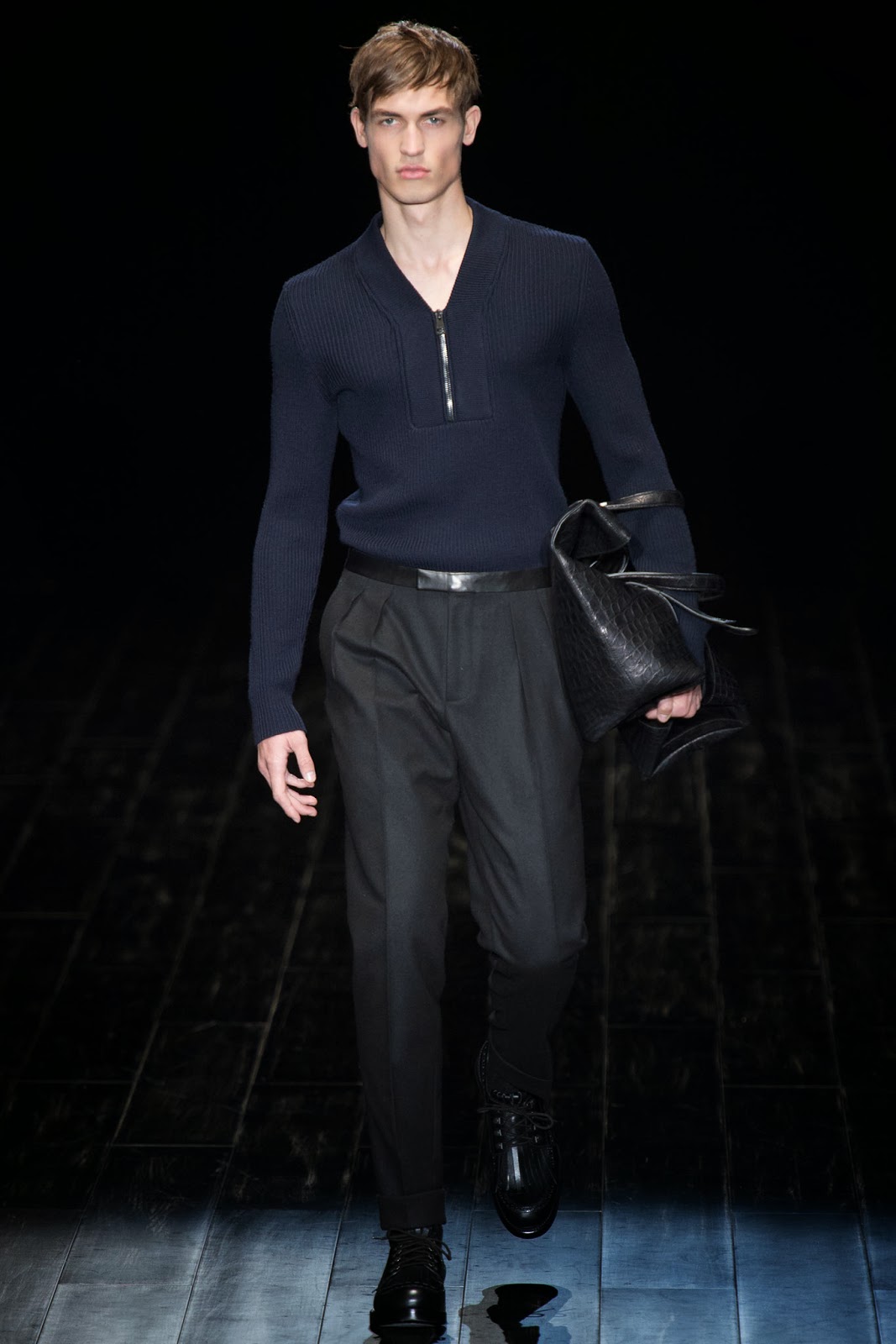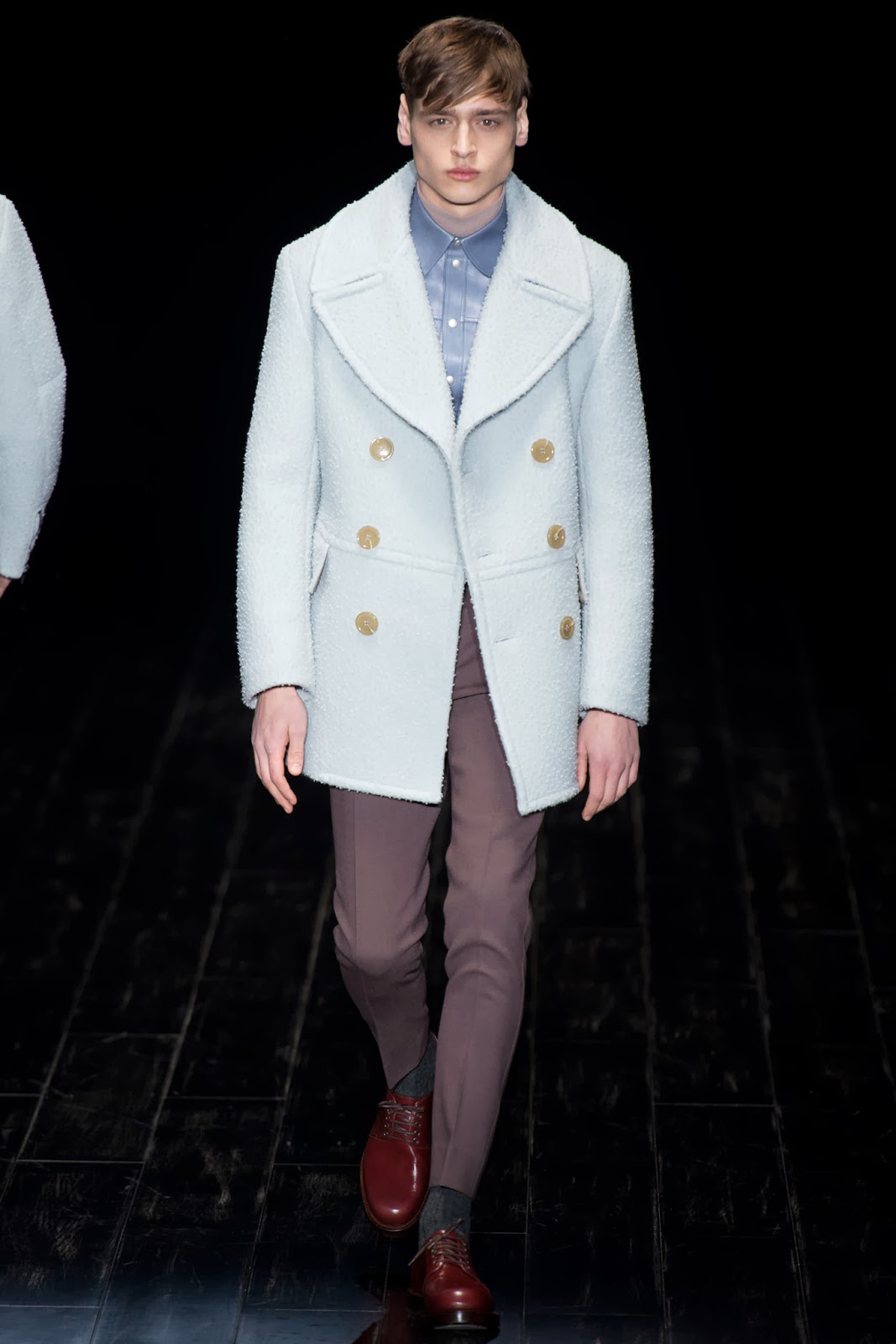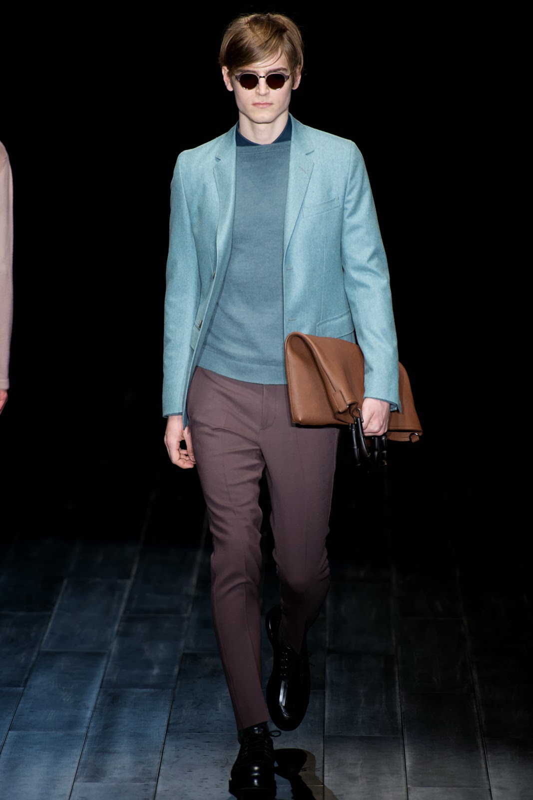 Imagina uma alfaiataria ajustada, perfeita ao seu corpo e über fashion; bem, foi exatamente isso que a Gucci trouxe na sua coleção de outono/inverno 2014 para a semana de moda masculina de Milão. Peças com corte perfeito, cores lindíssimas – começando por tons pastel e finalizando com looks em preto – e acessórios – leia-se bolsas – maravilhosos. Frida Giannini soube trazer uma coleção que transmite o perfil do homem atual que busca por moda moderna e fresca, mas com o clássico toque a alfaiataria italiana.