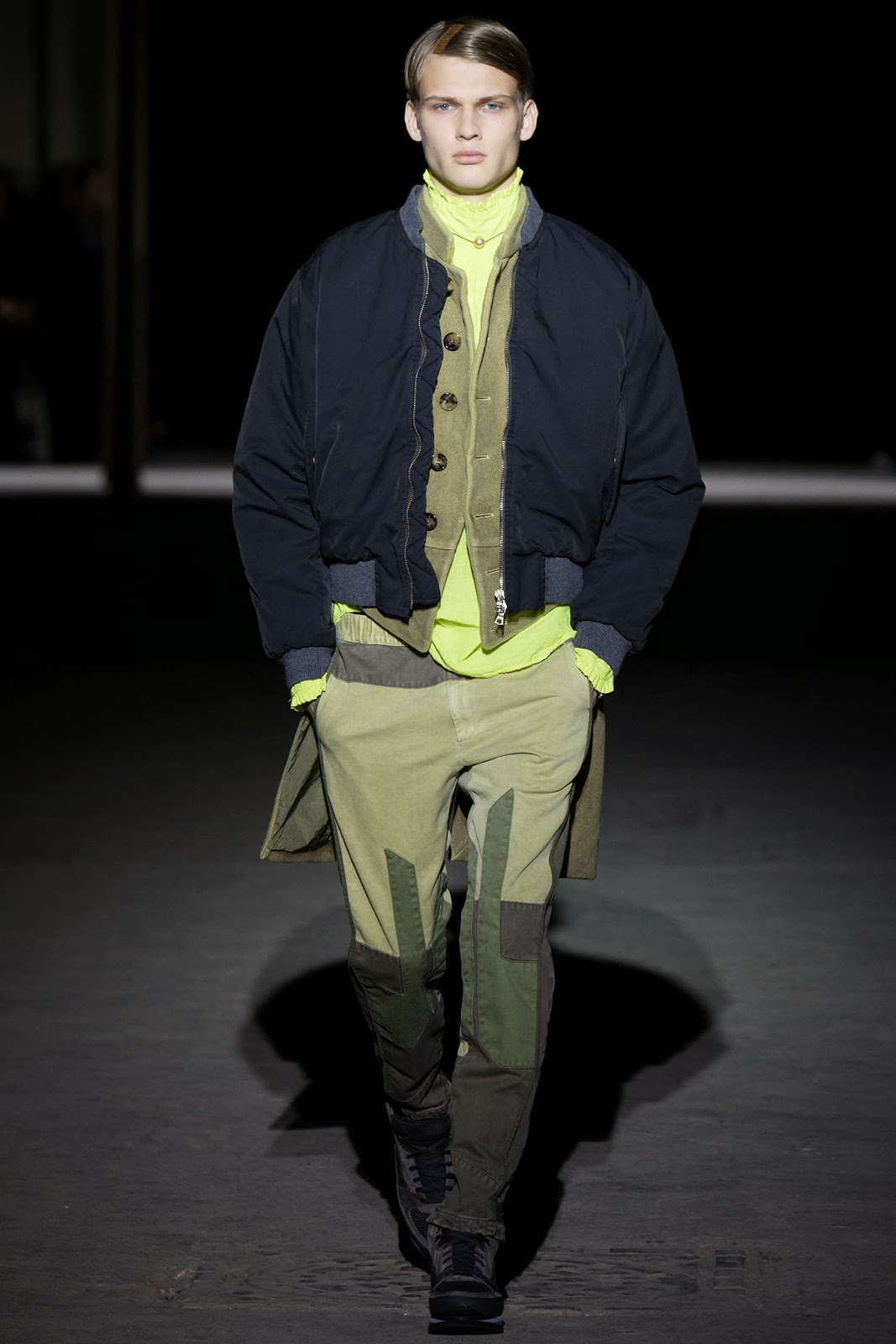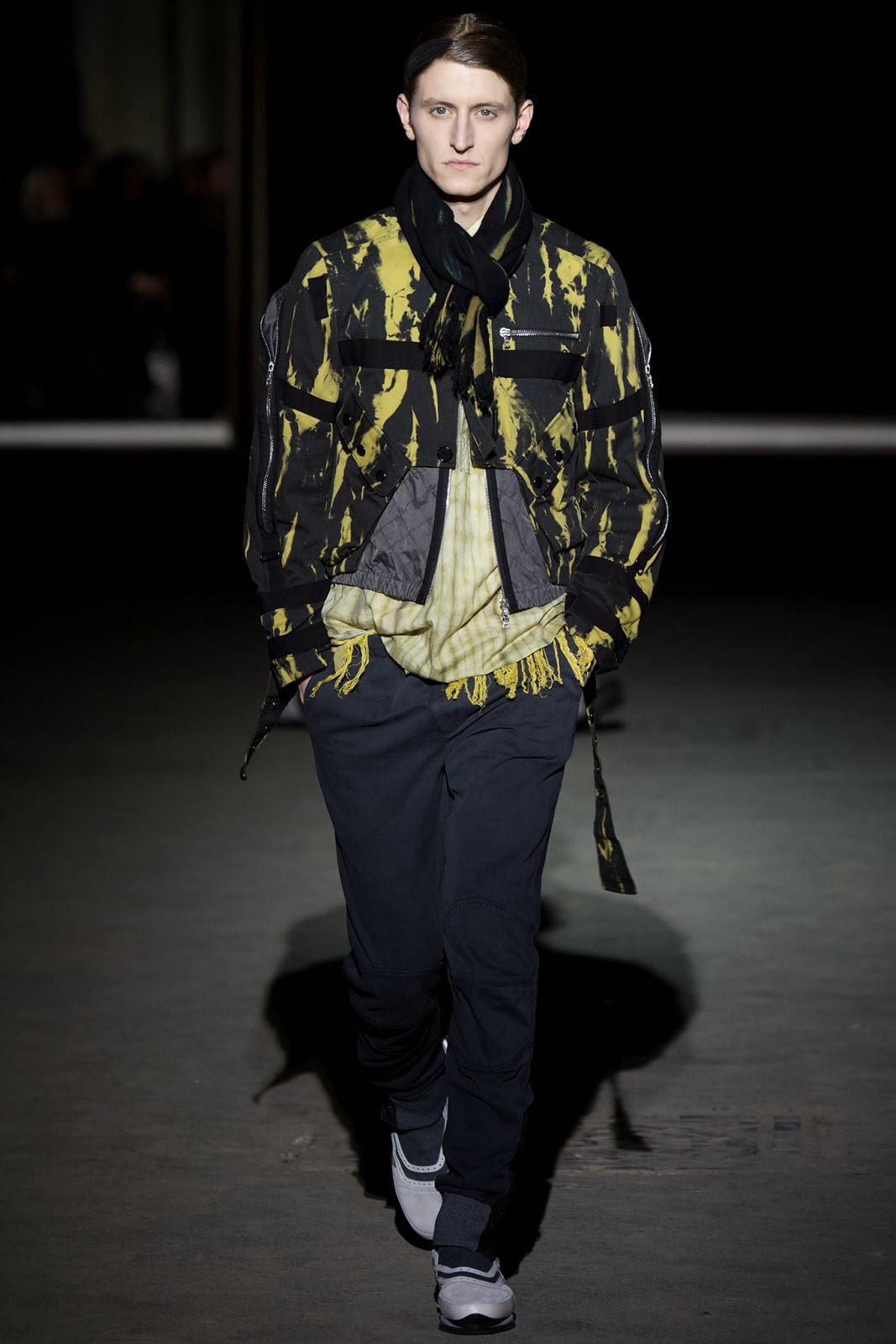 Com uma cartela de cores escuras e num clima sombrio, Dries Van Noten desfila sua coleção de outono/inverno 2014 na passarela da semana de moda masculina de Paris. Estampas em grafismos e tie-dye estavam presentes nas peças, com casacos longos e pesados. Os looks lembram a cultura underground americana, aqueles típicos de grandes metrópoles, como Nova York.