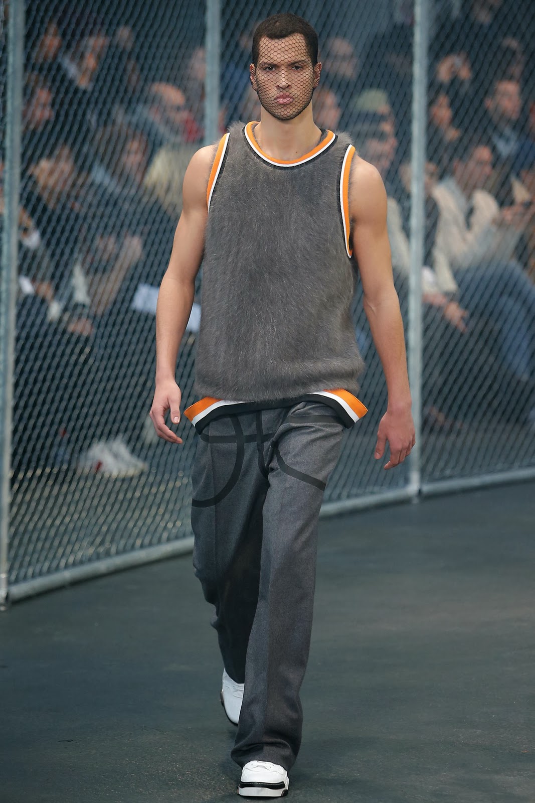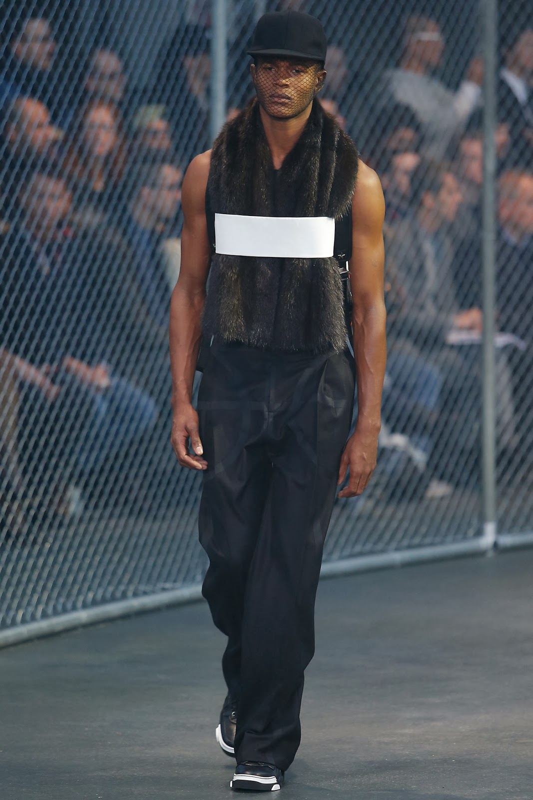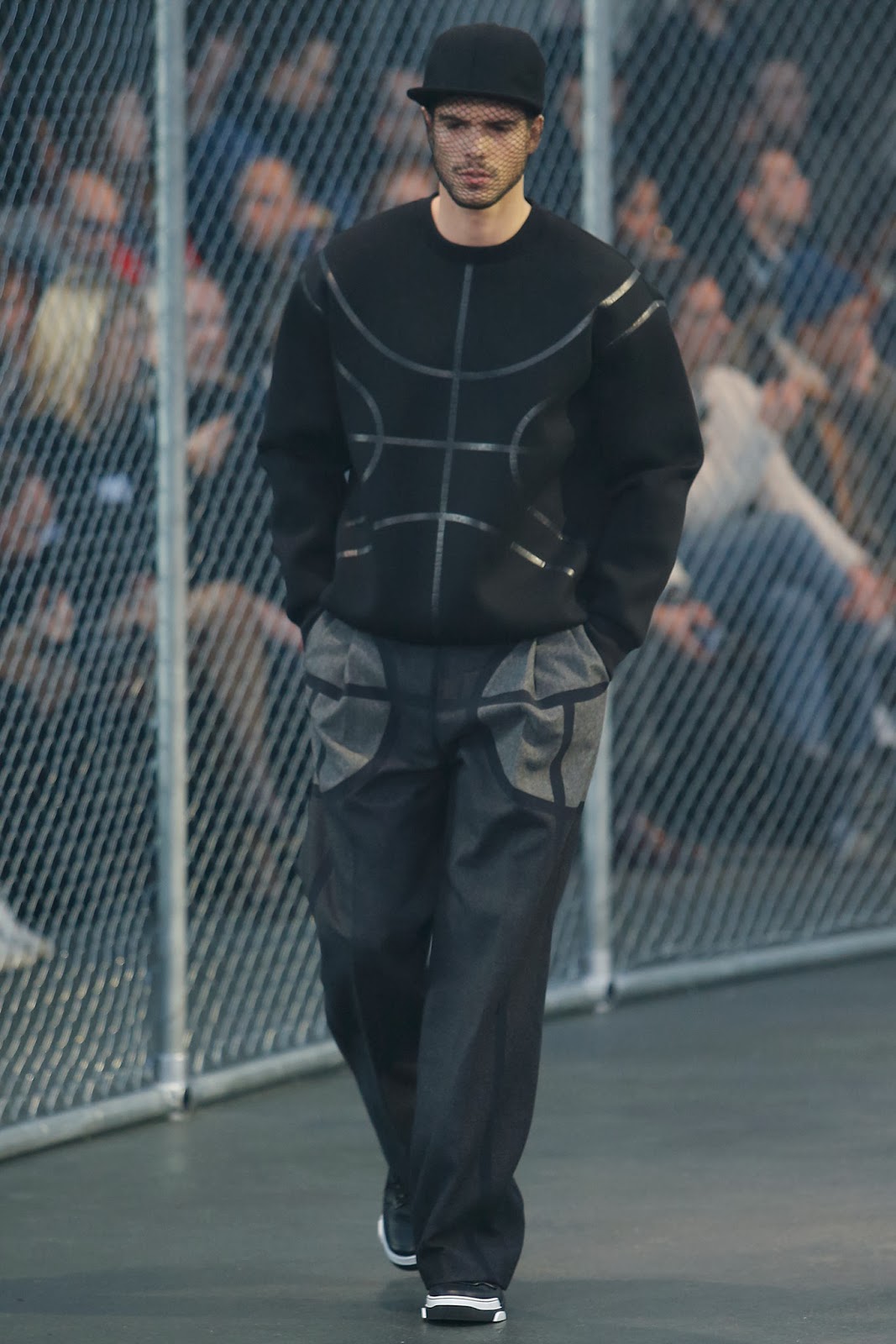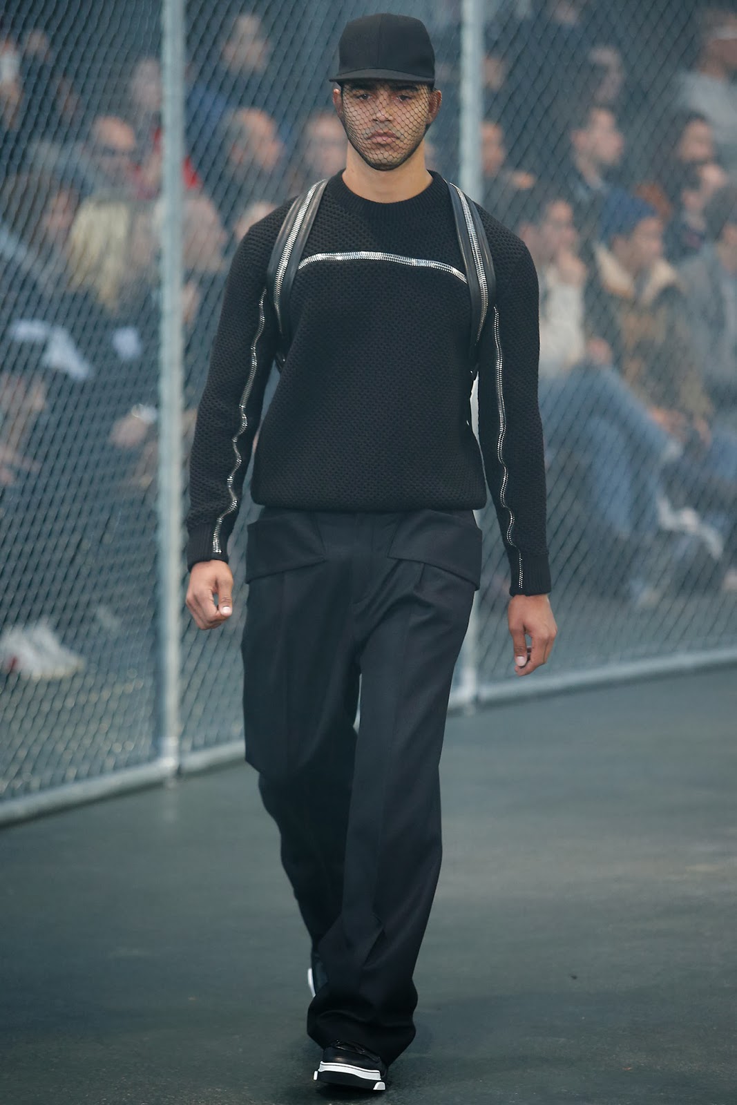 Apresentando uma coleção com pegada  sportswear, a Givenchy desfila na semana de moda masculina de Paris. As peças em modelagem oversized – grande aposta para essa temporada – vêm em cores escuras. A grife francesa parece ter se inspirado no mundo dos esportes para essa temporada; com direito a estampa de bola de basquete e roupas que lembram os uniformes dos jogadores de baseball, Ricardo Tisci deu o apito para que seus modelos desfilassem num verdadeiro campo, confira.