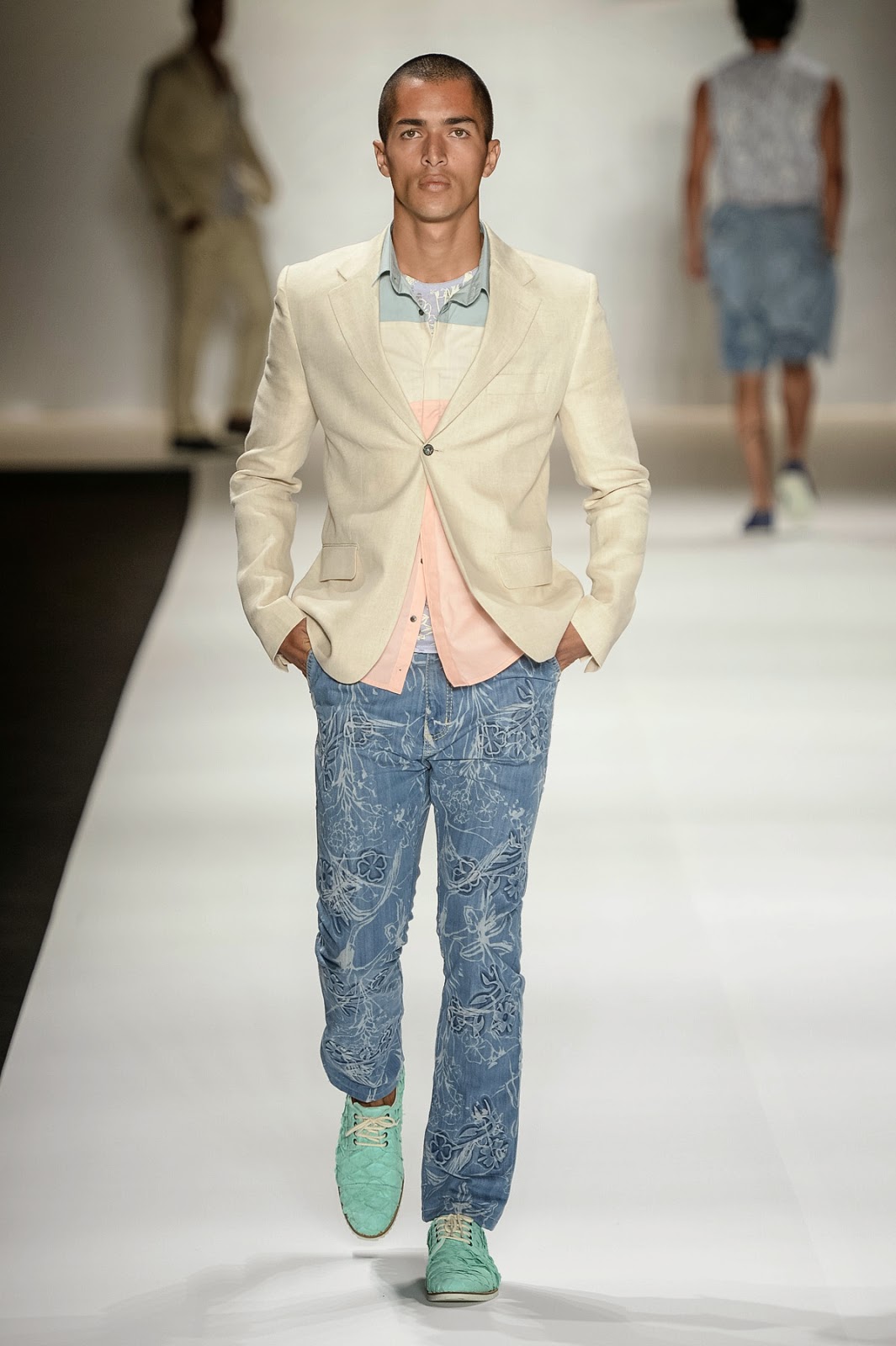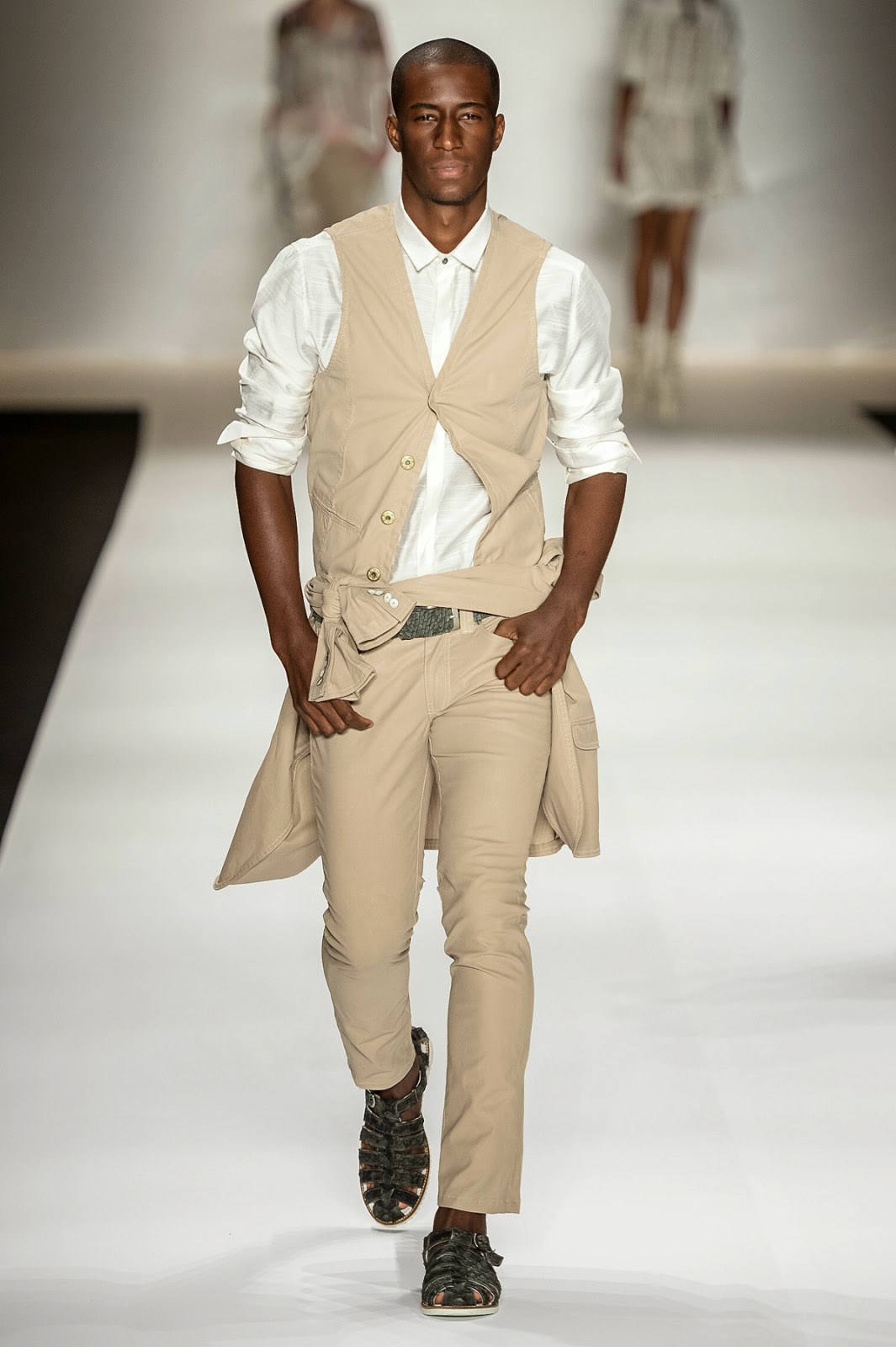 Jeans is the New Black poderia ser o tema da coleção de verão 2015 da TNG desfilada no Fashion Rio, pois Tito Bessa mostrou que com o denim você pode fazer de tudo. Com alfaiataria despojada, bem ao estilo verão, a marca trouxe uma proposta bem interessante ao mostrar várias facetas do jeans, ora em lavagem bem intensa, com bordados em alto relevo, e também o simples e liso. A estamparia ficou por conta dos delicados florais, com pegada meio romântica, e o tie dye, estampando o jeans. Vale destaque para as sandálias e bolsa, com material que lembravam escamas de peixe, bem interessante.