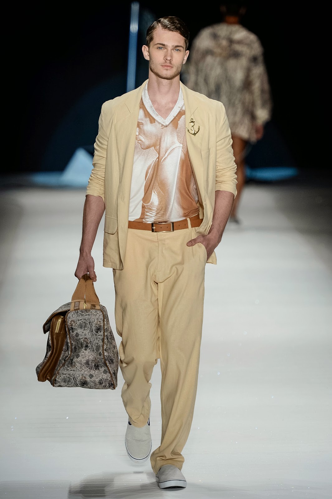 Victor Dzenk foi longe para buscar inspiração nessa edição do Fashion Rio, o estilista achou a cidade perdida de Atlantis e a trouxe para a passarela da semana de moda carioca. Com uma riqueza imensa em detalhes – mais na coleção feminina, ok – as peças do estilista traziam ilustrações em estamparia 3D – DNA da marca – que remetiam a imensidão da utópica metrópole, com conchas e estrelas do mar, além prints de mapas navais. Com peças bem ao estilo navy, os modelo vinham com uma pegada “resort de luxo”, com sungas cavadas, camisas e camisetas em tecidos leves ideais para a estação. A cartela de cores variava entre areia, sépia, branco, amarelo e azul marinho. Vale destacar os acessórios, que me deixaram completamente apaixonado, são eles os cordões e broche em âncora, os sapatos com estampas de estrela do mar, e claro, as duas maravilhosas bolsas #EuQuero.