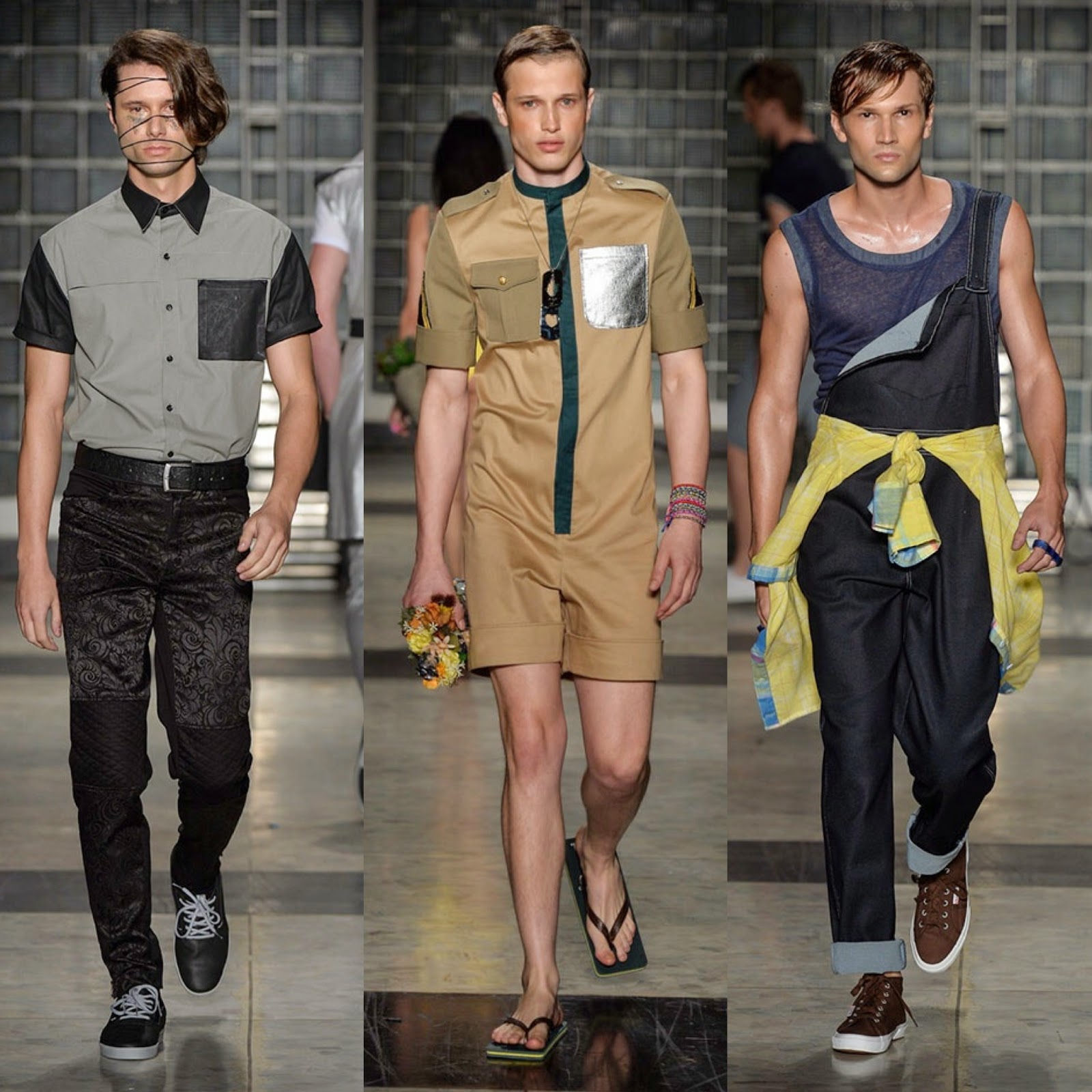 O estilista traz somente dois looks masculinos em seu desfile, mas que mostram a pegada usada por ele na sua inspiração, com um visual streetwear e pegada leve grunge. O interessante é ver que o macaca, peça por muitos esquecida, está sutilmente voltando ao guarda-roupas masculino.