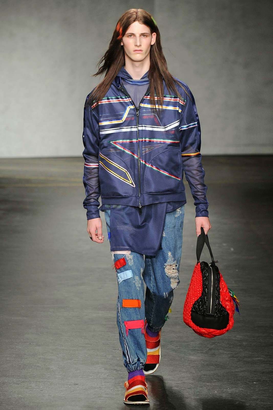 A coleção da marca mostra um interessante streetwear com pegada hippie sessentista, mas sem deixar de ser super contemporâneo. As cores intensas detalham e comandam as peças, dando um ar alegre a coleção, quase lembrando um patchwork sem propósito.