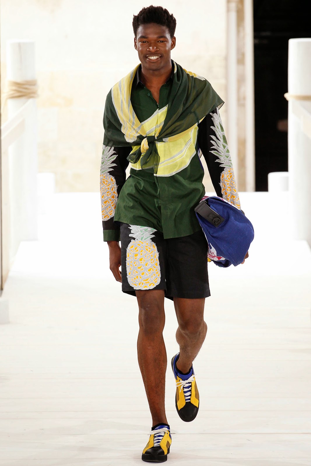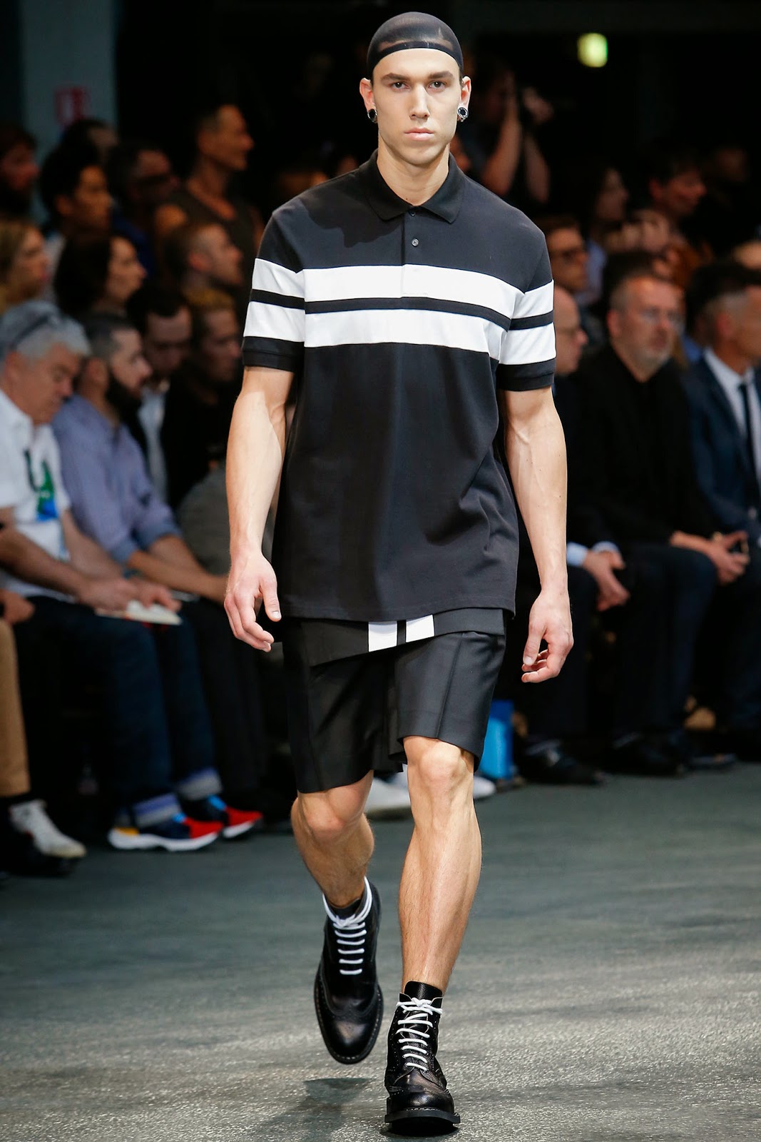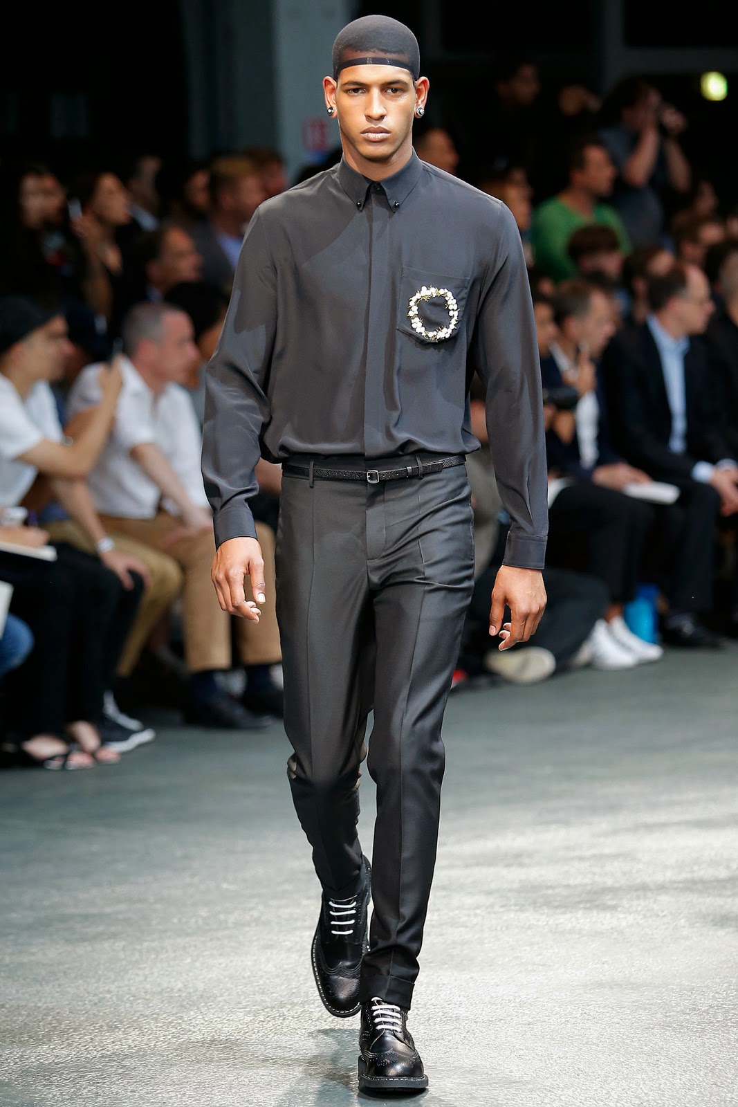 Riccardo Tisci é um gênio que vem trazendo grande notoriedade a Givenchy, e para a coleção masculina de Verão 2015, o estilista voltou a alfaiataria clássica da marca com tendências esportivas. As peças vinham com base no preto e branco, com algumas estampas em florais brancos minimalistas. A coleção está impecável, simples e objetiva, mais um maravilhoso trabalho de Tisci para a casa francesa.