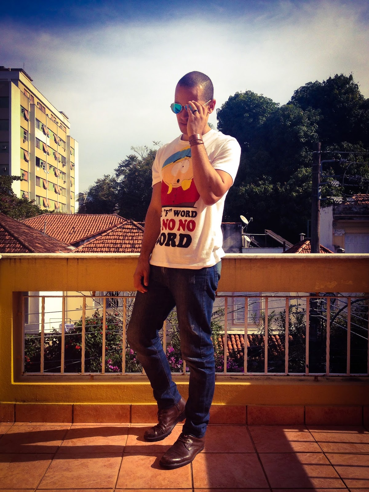 Finalmente consegui comprar a t-shirt que sempre quis. Sou fã de South Park desde que assistia o desenho na MTV Brasil – aquela legal do final da década de 1990 e início dos anos 2000, não essa hipster-poser-WTF(?!) que está no ar agora – e dentre todos os personagens de desenhos animados do mundo, o Cartman é o meu favorito EVER, não tem como não amar o humor desse pestinha. Encontrei essa camiseta num final de semana que passei em São Paulo, na Riachuelo da Oscar Freire – e que loja linda por sinal – quando a vi nem pensei, agarrei e gritei “é minha, minha”. Falando nisso, a Riachuelo está de parabéns pelas coleções masculinas, eles estão fazendo um ótimo trabalho, trazendo estampas e peças cada vez mais legais para a moda masculina, o que é feito muito pouco pelas grandes marcas brasileiras – infelizmente. Confira o look.