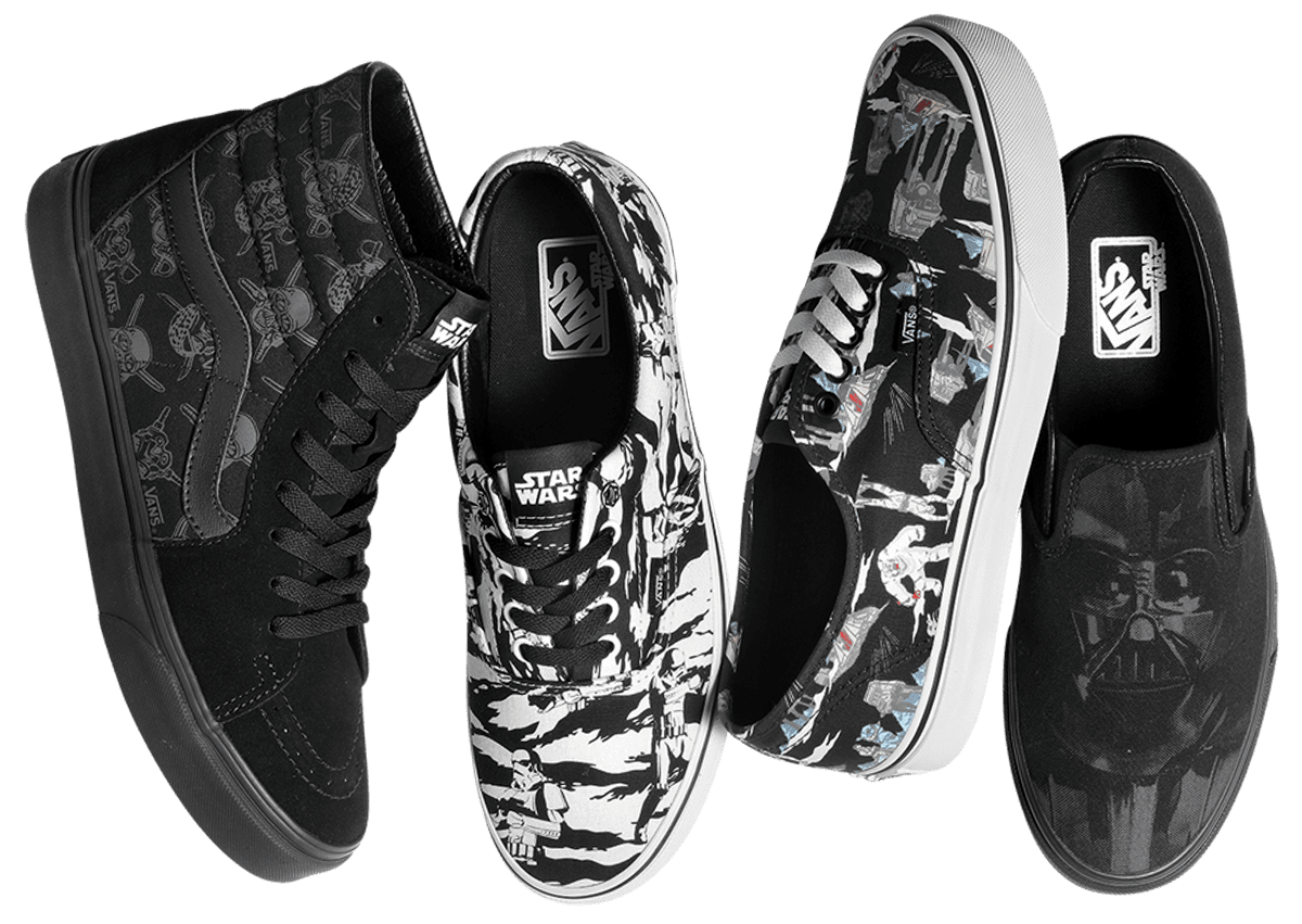 Depois do sucesso da outra coleção, a Vans repete a dose e faz mais uma vez uma linha com estampas da saga Star Wars. São tênis, mochilas, camisetas e bonés, ao contrário da coleção anterior, essa vem com todos as peças na pegada do p&b.