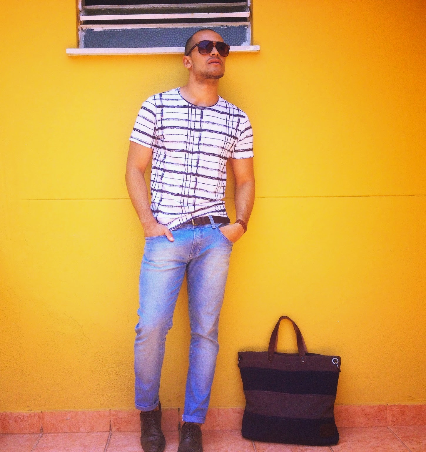 Camiseta: Riachuelo | Jeans: Triton | Brogue: Renner | Cinto: Zara | Óculos: A. J. Morgan | Tote bag: Riachards.