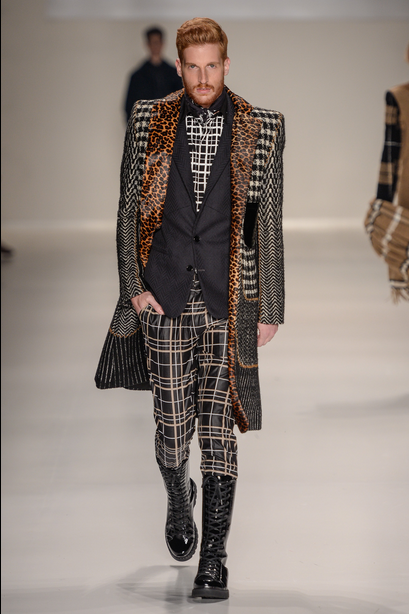 João Pimenta faz uma releitura dos seus 10 anos de desfiles de sua marca homônima em sua coleção de Inverno 2015 no São Paulo Fashion Week. O estilista traz uma grande variedade de xadrez em diferentes padronagens, além de animal print e estampas que remetem a fênix, fazendo referência clara ao renascimento do seu próprio trabalho – e que trabalho – na moda masculina. Na modelagem, ele brinca com os gêneros, passeando pelo vestuário masculino e feminino, onde homens usam sais sem medo de ser feliz.