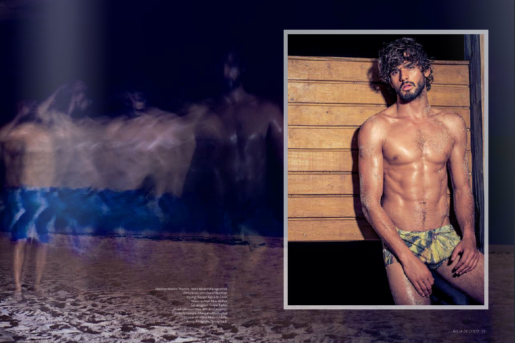 E o outro é para uma beachwear nacional, onde ele apresenta a coleção de verão 2015 da Água de Coco – coleção linda por sinal.