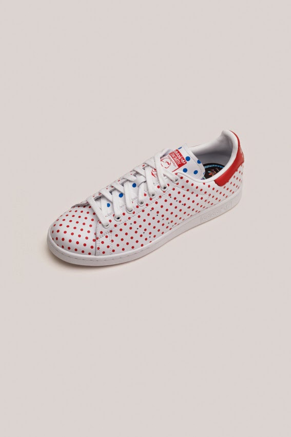 Os produtos finais da collab adidas Originals = PHARRELL WILLIANS, que chegam ao mercado no final de 2014 e decorrer de 2015, revelam uma brincadeira de Pharrell com a clássica estampa de bolinhas, ou polka dot, que revela um mood divertido que também traz o significado de energia e alegria.