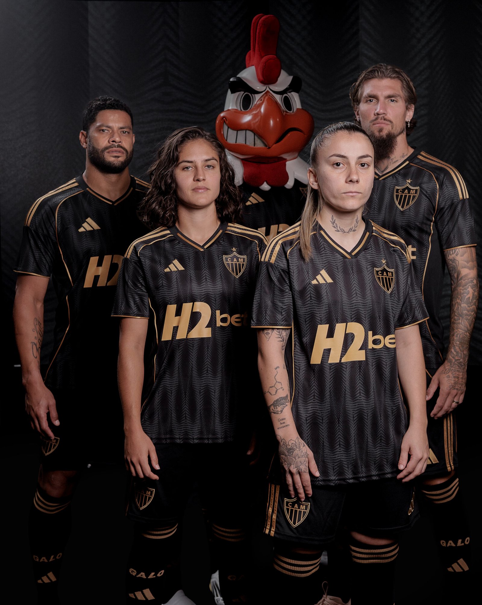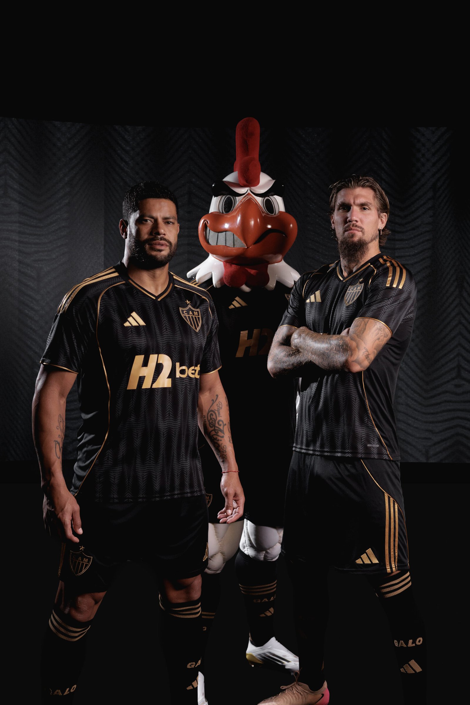 A nova camisa é predominantemente preta, com grafismos por toda sua extensão, remetendo ao movimento das penas do Galo e evidenciando a força e resistência do mascote. O uniforme ainda traz detalhes em cobre nas linhas verticais da lateral do tronco, no logo da adidas e nas já conhecidas três listras da marca. O nome e o número dos jogadores também aparecem em cobre. Para complementar o kit, as meias e calções são pretos.