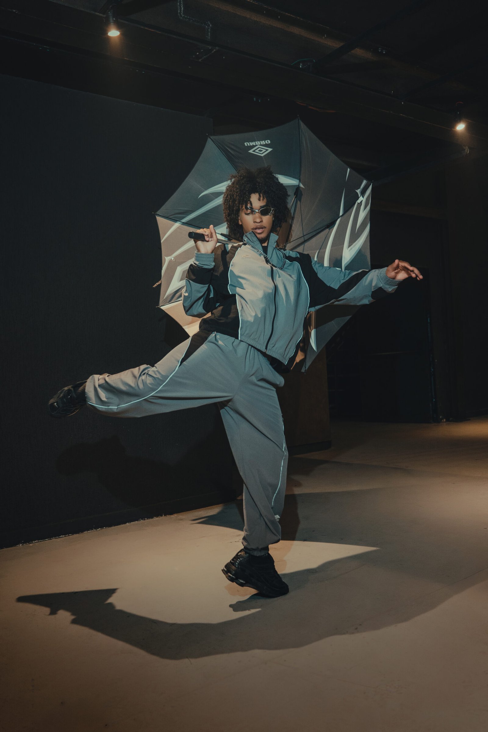 A coleção consiste em uma tradução do conceito em peças icônicas da Umbro, como as jerseys e track suit, além de camisetas, shorts, jaquetas, bonés e um vestido — tudo com a identidade visual que une o escudo da Umbro ao universo vibrante da KondZilla. A paleta de cores aposta no preto, branco e roxo, com toques de neon e cortes inspirados no streetwear europeu, reinterpretado com a alma brasileira.
