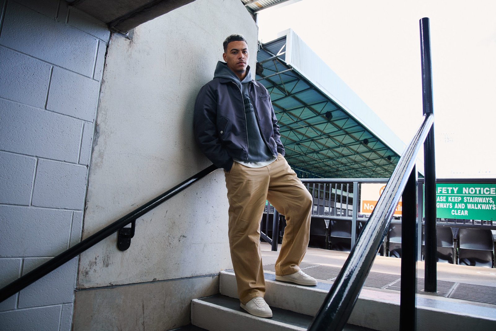 A linha inspirada nos gramados da Inglaterra abrange também peças de vestuário. Entre os destaques, modelos essenciais da PUMA refinados, como jaquetas, jerseys, calças e camisetas, todas apresentadas na paleta natural característica da Represent.