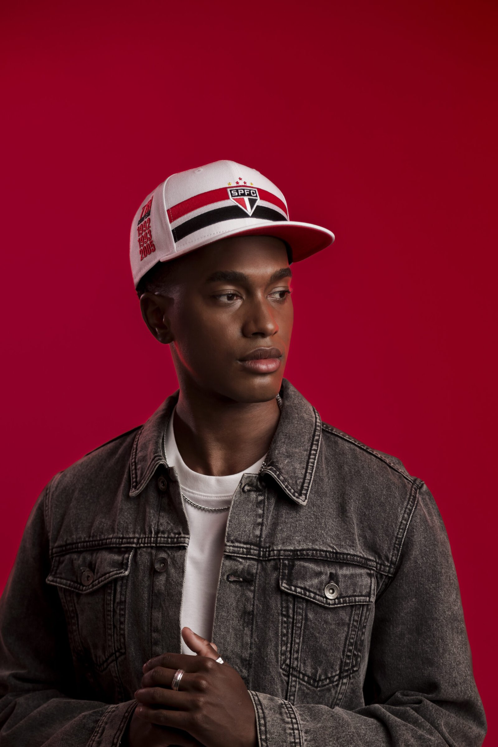 Entre os destaques da coleção estão três bonés icônicos, cada um inspirado em capítulos fundamentais da trajetória do São Paulo: