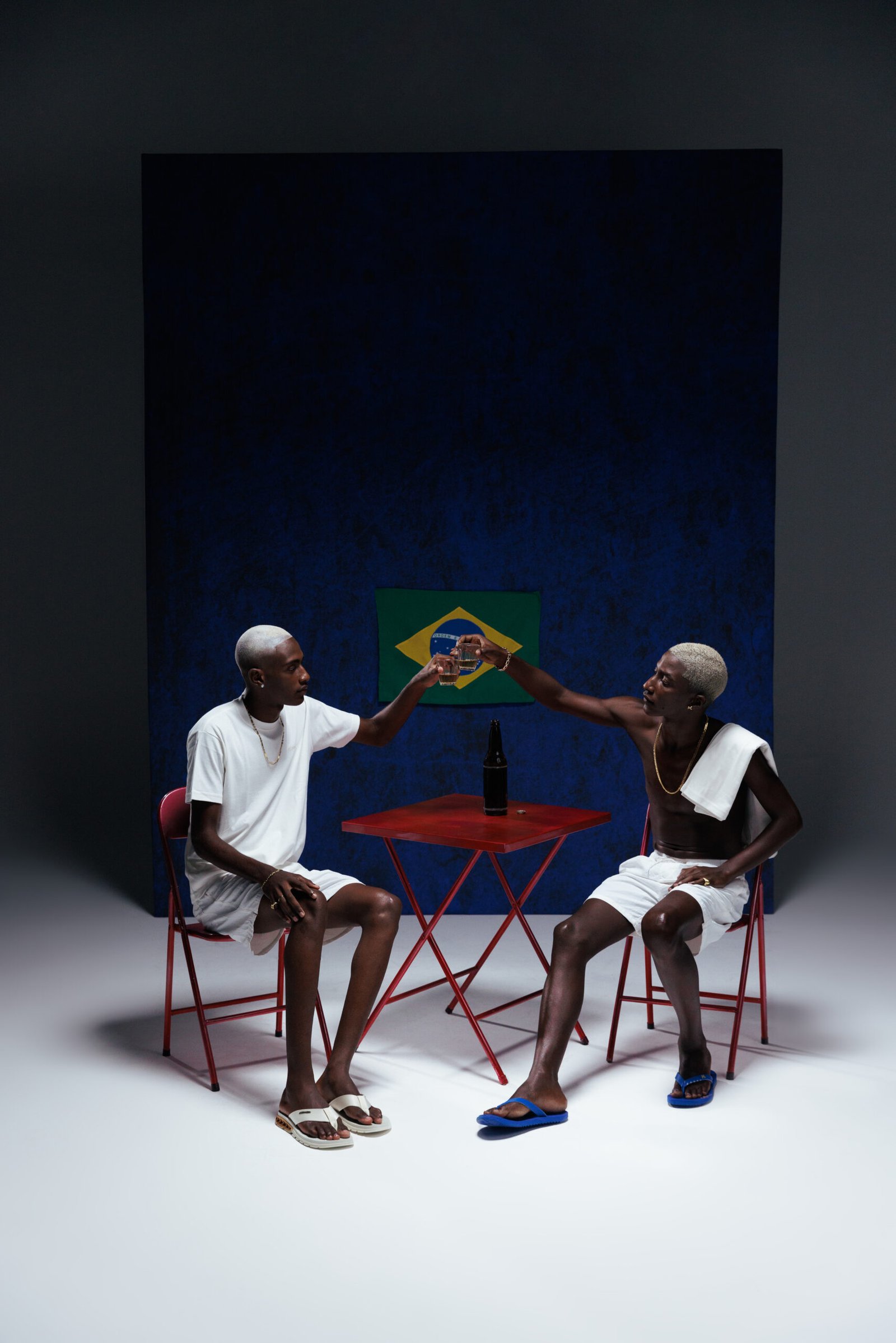 Tudo foi pensado junto ao time criativo da Kenner desde o início. As sandálias, além da arte autoral, aparecem também com elementos muito evidentes e específicos do meu trabalho, como a rosa dourada e a estrela. Um dos modelos traz uma arte feita para o projeto: um garoto negro de olhos fechados voando com asas feitas com o ‘K’ icônico da marca. Pensamos nas sandálias de uma forma que traduzisse aquilo que tenho de mais meu como artista, em união com DNA da marca”, contou Saturno.